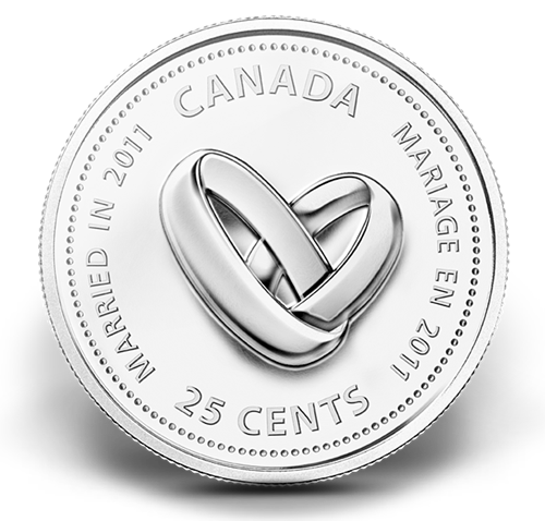 Célébrez les beaux moments de la vie avec ces jeux de pièces canadiennes* traditionnelles 2011 en version hors-circulation, dont celle de 25 cents gravée d'un motif inédit!