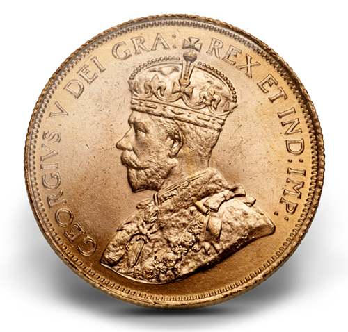 • Ces authentiques pièces d’or canadiennes, millésimées 1912 à 1914, sont composées à90 % d’or fin canadien, provenant en grande partie de la région du Klondike (1912)et de l’Ontario (1913-1914), et à 10 % de cuivre.