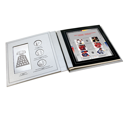 L’album est accompagné d’un certificat d’authenticité numéroté et il contient un livre de plus de 48 pages produit en collaboration avec le Temple de la renommée du hockey. Ce livre présente les six grands gardiens de but canadiens figurant sur les timbres émis cette année, notamment leur contribution aux équipes de la LNH dans lesquelles ils ont joué et qui ont remporté la CoupeMD Stanley.