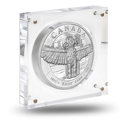 La pièce est présentée dans un boîtier en acrylique et accompagnée d’un certificat numéroté sous forme de livret. Le tout est contenu dans un élégant coffret en noyer orné du logo de la Monnaie royale canadienne. Pour en protéger l’intégrité, le produit est expédié dans un coffret de marque Pelican 1550 à l’épreuve de l’eau, des coups et de la poussière.