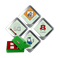 99,9 %, chaque pièce a pour motif une des images emblématiques des quatre cases de coin du plateau de MONOPOLY, soit :