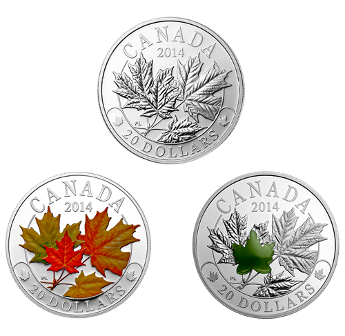Abonnement à la série de trois pièces de 1 oz en argent fin - Majestueuses feuilles d'érable (2014)