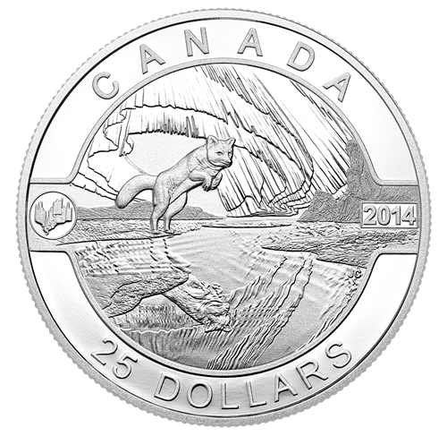 Pièce de 1 oz en argent fin - Le renard arctique et l'aurore boréale - Tirage : 8 500 (2014)