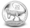 • Cette pièce, la deuxième d'une série de pièces en argent fin, est ornée de l'image de plain-pied réaliste d'un dinosaure.