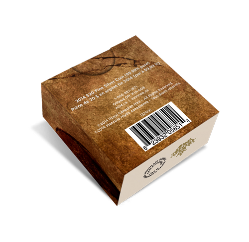 La pièce est encapsulée et présentée dans un boîtier à double coque bordeaux orné du logo de la Monnaie royale canadienne. Le boîtier est assorti d’une boîte protectrice noire.