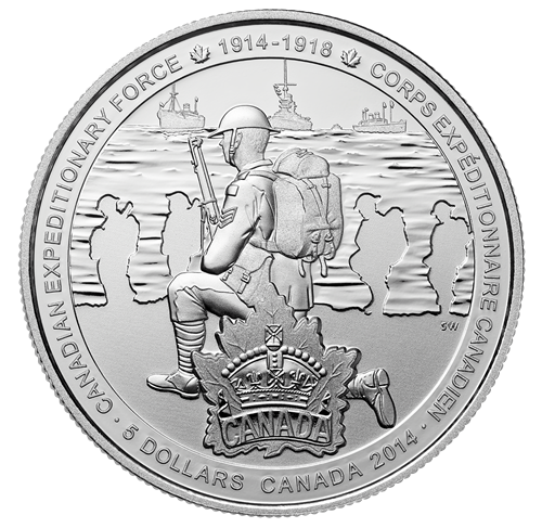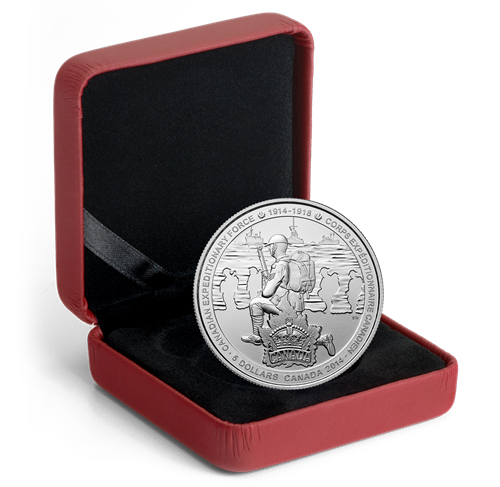 Le motif superbement détaillé de cette pièce commémore le 100e anniversaire de la déclaration de la Première Guerre mondialeet rend hommage au Corps expéditionnaire canadien, dont la bravoure au combat a aidé le Canada à se forger une identité nationale et à devenir plus autonome.