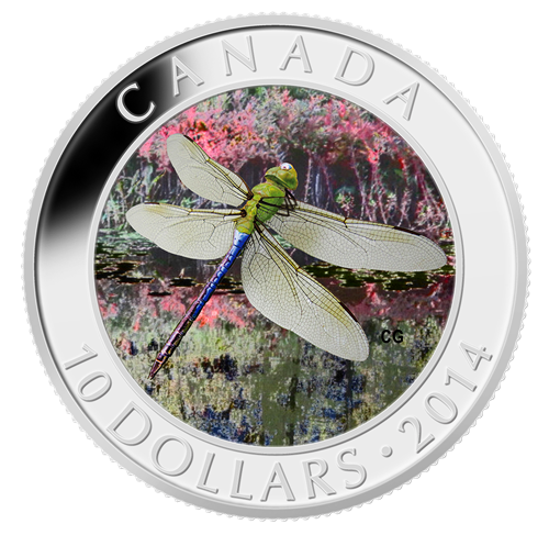 • La deuxième pièce d’une nouvelle série captivante de la Monnaie royale canadienne présentant des images peintes des diverses espèces canadiennes de libellules accompagnées d’hologrammes de leur habitat naturel.