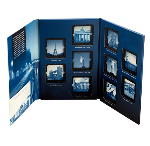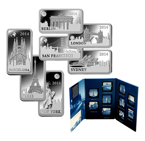Découvrez les lieux d'intérêt les plus fascinants du monde, mis en valeur surdes plaquettes en argent fin. Cette collection vousemportera vers des destinations inspirantes, dont Londres, New York et Sydney. Collectionnez les dix plaquettes! Seulement 10 000 ensembles complets seront vendus dans le monde.
