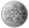 La pièce est encapsulée et présentée dans une boîte en carton illustrée.