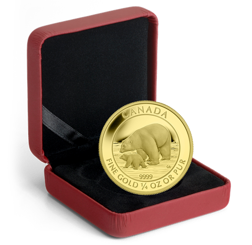 Pièce de 1/4 oz en or pur – Ours polaire et ourson – Tirage : 2 000 (2015)