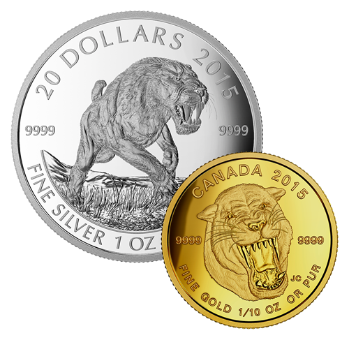 Le motif saisissant, œuvre de l'artiste canadien Julius Csotonyi, représente un chat des cavernes rugissant, la gueule béante et les crocs menaçants bien en vue. La somptueuse fourrure, les yeux perçants, les dentsacérées comme une lame de rasoir et la langue rugueuse de ce prédateur ont été ciselés avec soin au revers de ces splendides pièces.