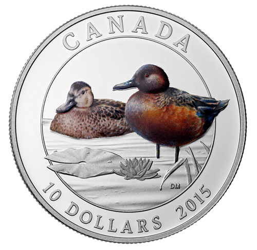 • Il s'agit de la cinquième pièce de la populaire série Canards du Canada de la Monnaie royale canadienne. Cette pièce sera assurément très recherchée par les ornithologues amateurs, les chasseurs de canards et les admirateurs de pièces colorées.