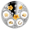 La magnifique pièce souvenir « Porte-bonheurs » constitue une formidable idée cadeau. Sa surface est ornée de ravissants ornements floraux et de quatre capsules transparentes contenant des incrustations de style filigrane en argent. Chaque symbole de chance est recouvert d'un placage d'or 24 carats. La pièce est présentée dans un élégant étui en forme de cadre protégé par une boîte spécialement conçue représentant quatre symboles de chance : un trèfle à quatre feuilles, un fer à cheval, un éléphant et une coccinelle.