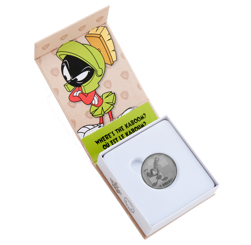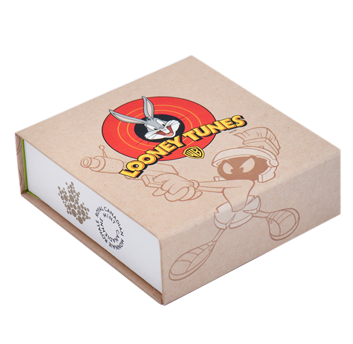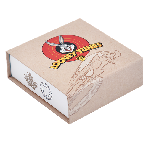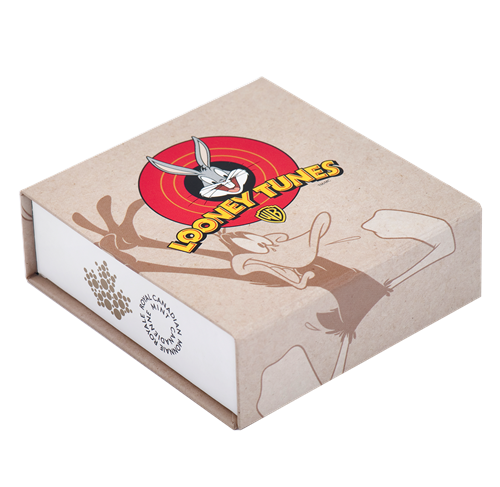 • Un toit uniquepour votre pièce de 20 $ pour 20 $ de Bugs Bunny! Cet emballage contient un endroit pour placer votre pièce de 20 $ pour 20 $ de Bugs Bunny!