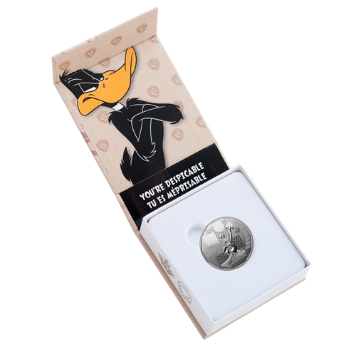 Chaque pièce encapsulée est présentée dans une boîteen carton illustrée. Réunies, les huit pièces de collection déposées dans leur coffret forment un tableau amusant.