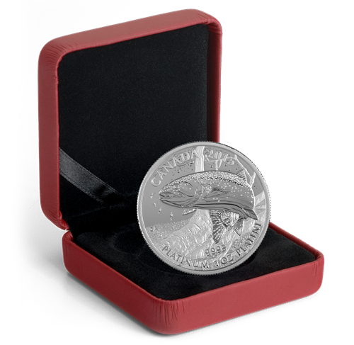 • Le motif saisissant de cette pièce en platine, riche en détails magnifiquement ciselés, représente l’un despoissons-gibiers les plus prisés d’Amérique du Nord.