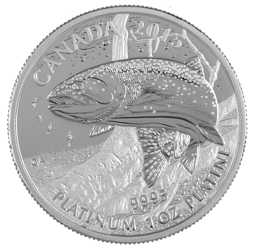 Poissons-gibiers d’Amérique du Nord : truite arc-en-ciel – Pièce de 1 oz en platine pur (2015) – Ti