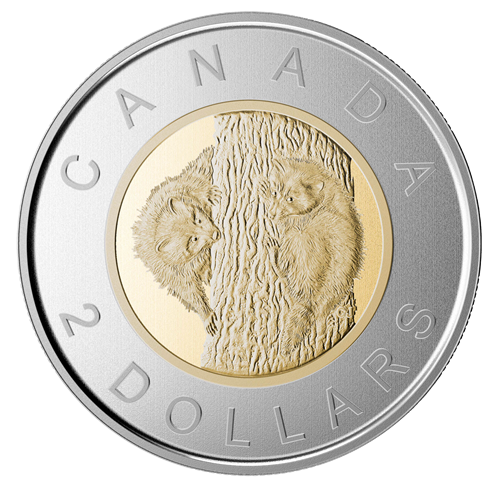 Conçu par l’artiste canadien Clinton Jammer, le motif représente deux bébés ratons laveurs qui jouent et apprennent à grimper à un arbre en s’accrochant à son écorce par unejournée d’été. La queue, fournie de poils abondants et rehaussée de rayures, ainsi que le masque noir si reconnaissable de ces bébés agiles aux regards curieux sont parfaitement visibles.