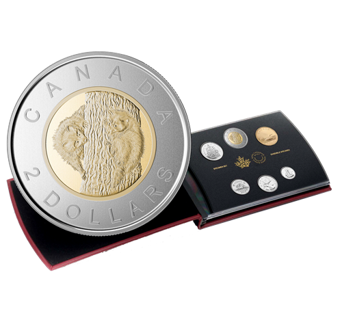 • DISPONIBLE UNIQUEMENT DANS CET ENSEMBLE! La pièce de deuxdollars magnifiquement ciselée, proposée en édition spéciale, est disponible uniquement dans cet ensemble, qui inclut également les autres pièces de circulation canadiennes 2015.