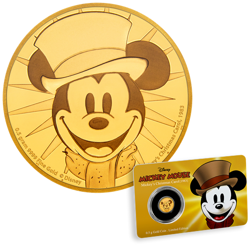 Pièce de 0,5 g en or pur - Mickey à travers les âges : Le Noël de Mickey