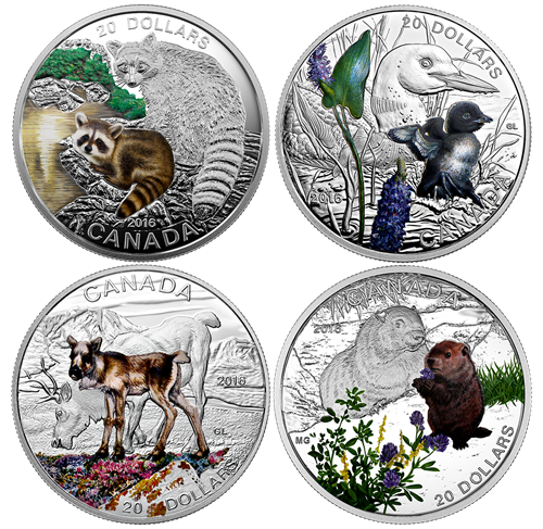 Chacune des quatre pièces en argent fin comprises dans l'abonnement à la série Petits du monde animal met en vedetteun bébé animal superbement coloré. Il s'agit du cadeau idéal à offrir à quiconque admire le savoir-faire avec lequel la Monnaie Royalecanadienne illustre les petits du monde animal surses pièces en argent.