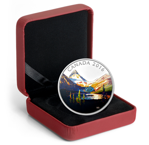 Pièce colorée de 1 oz en argent fin – Série Paysages canadiens – Le lac – Tirage : 7 500 (2016)