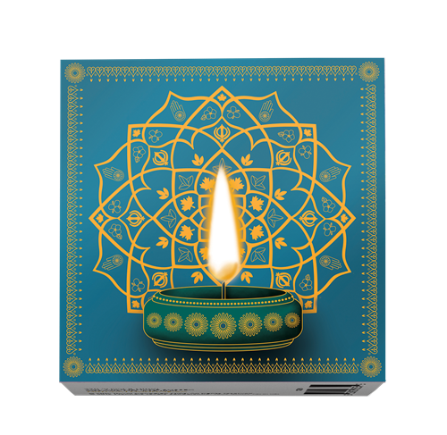 Une lumière spirituelle émane du centre de cette pièce, à l'instar de la joie qui remplit les cœurs et les foyers durant la fête des lumières; cette ancienne tradition hindoue est perpétuée chaque année par plus d'un million d'Indo-Canadiens. Les divers symboles du motif de la pièce marient magnifiquement les influences orientales et occidentales, et évoquent les thèmes universels du triomphe de la lumière sur la noirceur, et du bien sur le mal. Joignez-vous à la fête!