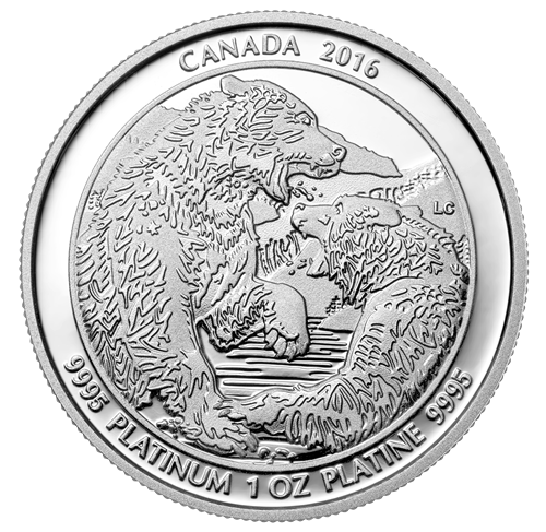 Pièce de 1 oz en platine pur – Le grizzli : L'affrontement – Tirage : 200 (2016)