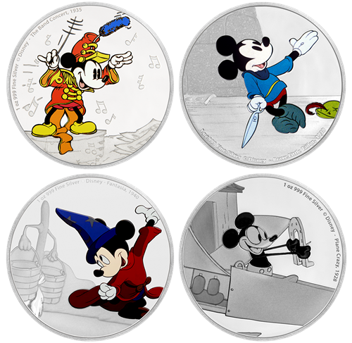 Abonnement à la série de quatre pièces de 1 oz en argent fin – Disney : Mickey à travers les âges (2