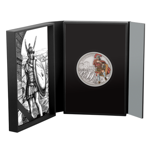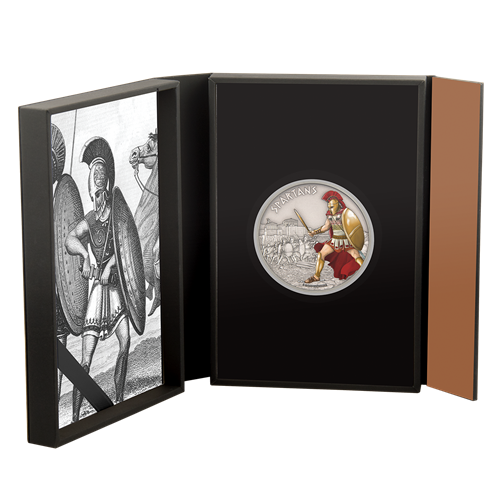 Chaque pièce de la série Guerriers d'autrefois est présentée dans son propre coffret, qui renferme aussiun certificat illustré en couleurs.