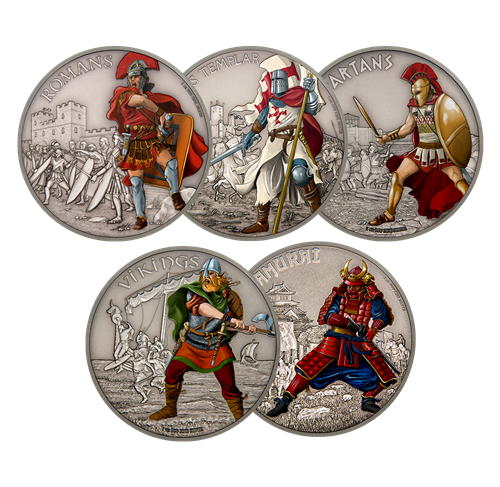 Abonnement à la série de 5 pièces de 1 oz en argent fin – Guerriers d'autrefois – Tirage : 5 000 (20