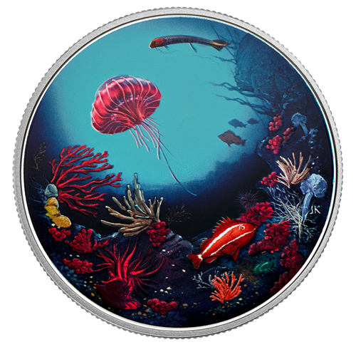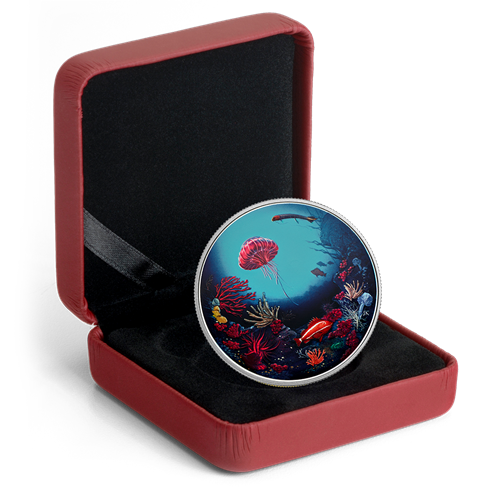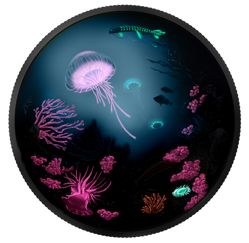 Pièce photoluminescente de 2 oz en argent pur - Récif sous-marin éclatant - Tirage : 4 000 (2016)