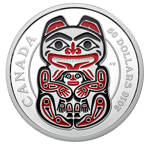 Pièce de 5 oz en argent fin rehaussée d'émail - Série Royaumes mythiques des Haïdas : L'ours - Tirag
