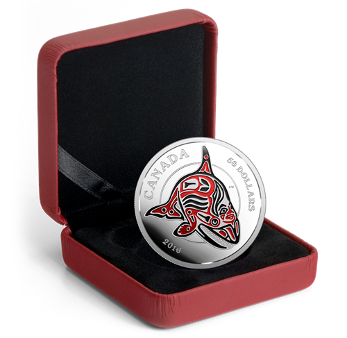 Pièce de 5 oz en argent fin avec émail - Royaumes mythiques des Haïdas : L'épaulard - Tirage : 1 500