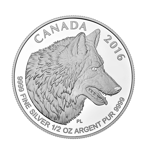 Les quatre pièces en argent pur à 99,99 % sont chacune ornées du même motif remarquable au revers, œuvre de l'artiste canadien Pierre Leduc. À l'aide de différents finis mettant en valeur leurs techniques de pointe, les graveurs de la Monnaie royale canadienne ont fidèlement reproduit le profil d'un loup gris solitaire. Ce profil met en valeur les textures de la crinière de l'animal, ses oreilles pointues et ses traits faciaux. Le loup est doté d'une grande intelligence et de sens affutés. Sur cette pièce, son regard inébranlable fixe l'horizon, au-delà du champ du motif, ce qui nous permet d'observer de près son expression, la langue légèrementsortie et la gueule entrouverte, découvrant les dents de la mâchoire inférieure. Le motif conjugue à merveille talent artistique et savoir-faire, qu'illustreparfaitement le ciselage méticuleux de la crinière, ajoutant ainsi profondeur etrelief au motif. On peut facilement imaginer la douceur de cette fourrure au toucher.