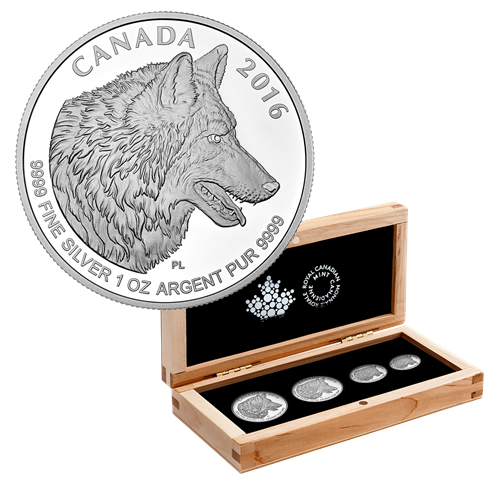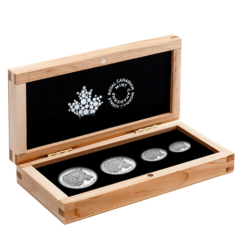 Cet ensemble divisionnaire incontournable constitue un exemple frappant du savoir-faire de renommée mondiale des graveurs de la Monnaie royale canadienne. Ces derniers ont reproduit l'image d'un majestueux loup gris sur des pièces de poids variés (1 oz, 1/2 oz, 1/4 oz et 1/10 oz) tout en conservant le même degré de réalisme, de profondeur et de relief… un véritable tour de force artistique!