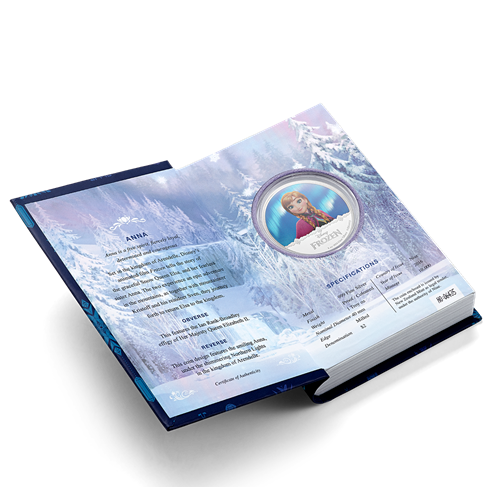 La pièce Anna est la deuxième émission de la nouvelle série La Reine des neiges : La magie des aurores boréales. Elle est présentée dans un ravissant emballage ressemblant à un livre de contes orné d'une image d'Anna. L'emballage thématique en fait un cadeau idéal pour tout amateur des personnages de Disney ou collectionneur de pièces. La pièce est assortie d'un certificat d'authenticité imprimé sur l'emballage.