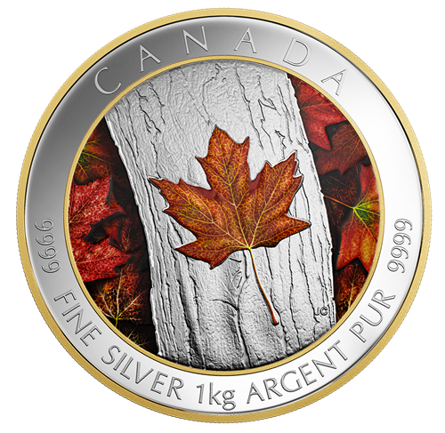 Le motif de la pièce, œuvre de l'artiste canadien Julius Csotonyi, représente une feuille d'érable colorée dans un magnifique paysage d'automne au Canada. Dans une aire boisée, la brise fraîche a déjà fait tomber des feuilles d'érable vivement colorées. La gravure minutieuse et le vibrant mélange de rouge, de jaune, d'orange et de vert donnent vie à chacune d'elles, ce qui confère à l'amoncellement de feuilles un aspect et une texture naturels tout en créant unarrière-plan coloré. La gravure détaillée recrée magistralement la texture rugueuse de l'écorce fissurée sur laquelle repose l'emblème bien-aimé du Canada : une feuille d'érable. Elle est resplendissante de couleurs et mise envaleur par les teintes neutres du tronc d'arbre, tandis que des ombres empreignent subtilement le motif magnifique de luminosité, de profondeur et de volume.
