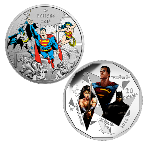 Rehaussé de couleurs vives, le motif détaillé et gravé au revers donne vie aux portraits artistiques deWONDER WOMANMC, de SUPERMANMC et de BATMANMC, la « trinité » de l'univers de DC COMICSMC. À l'arrière-plan, les formes polygonales disposées avec soin contrastent entre elles grâce à des finis givrés qui produisent un effet remarquable de verre brisé. Cet élément visuel illustre de façon symbolique l'éclatement de ce qui a été établi dans L'Homme d'acierMCet les défis que SUPERMANMC va devoir affronter après s'être révélé au monde. Les trois superhéros se trouvent chacun dans l'un de ces polygones : WONDER WOMANMC est prête au combat, son épée ornée de caractères phéniciens brandie devant elle; SUPERMANMC projette sa force herculéenne, le regard braqué sur l'horizon, alors que l'œil de l'observateur se porte naturellementvers l'écusson emblématique rouge et jaune orné du célèbre « S » qui lui barre la poitrine; et, sous son masque, BATMANMC adopte une expression sérieuse qui insuffle au portrait de ce justicier aguerri un aspect menaçant. Le nom dechacun des superhéros est gravé à ses côtés, dans l'alphabet kryptonien élaboré par la réputée linguiste canadienne Christine Schreyer, Ph. D.