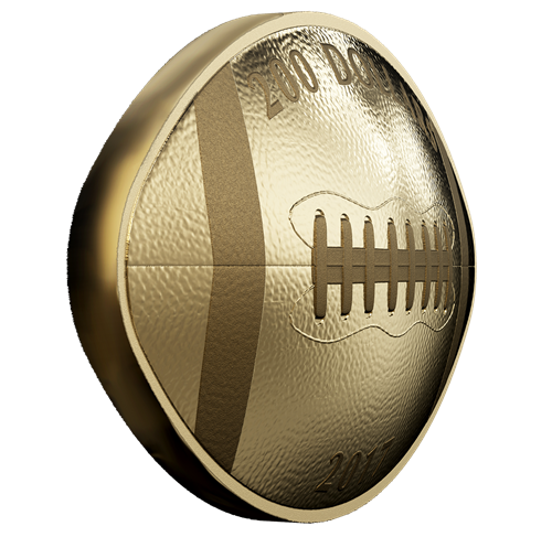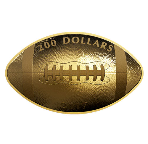Les graveurs de la Monnaie royale canadienne ont minutieusement ciselé un ballon de football aucontour incurvé et au revers convexe, donnant ainsi à cette pièce un réalisme exceptionnel. Même s'il existe de légères différences entre les ballons des diverses ligues nord-américaines, le motif met en valeur toutes les caractéristiques de celui utilisé de nos jours pour le football canadien : les panneaux de cuir, les deux bandes et le lacet autrefois nécessaire à sa fabrication, mais qui sert maintenantà améliorer la prise en main.