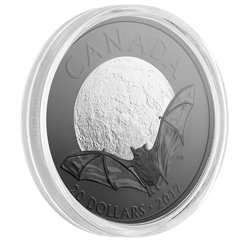 - UNE PREMIÈRE À LA MONNAIE! En utilisant un placage de rhodium noir, la Monnaie a pu reproduire fidèlement le ciel nocturne etmettre à l'honneur le fini joliment givré de la lune!