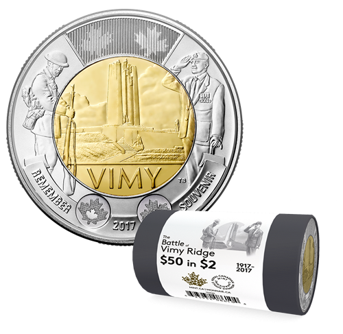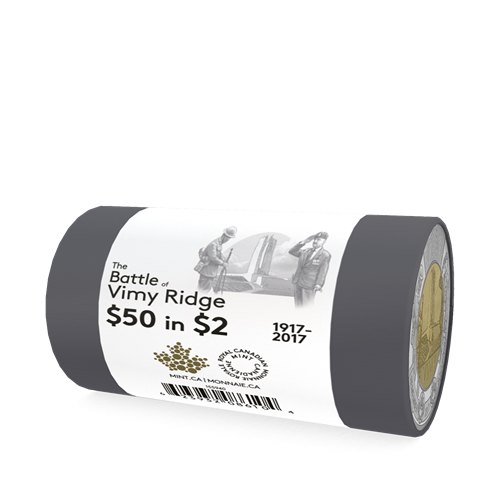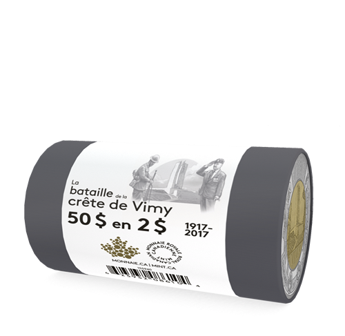 - UN HOMMAGE AUX ANCIENS COMBATTANTS. Ce rouleau spécial de pièces de 2 $, qui soulignele 100e anniversaire de la bataille de la crête de Vimy, perpétue fièrement la tradition de la Monnaie royale canadienne d'honorer les hommes et les femmes qui ont servi notre pays et quiont combattu en temps de guerre.
