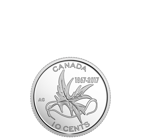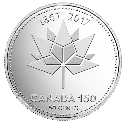 - UNE PIÈCE DE 50 CENTS AU MOTIF SPÉCIAL! La pièce de 50 cents est ornée du logo officiel CANADA 150, dont la mosaïque en forme de feuille d'érable représente la Confédération.