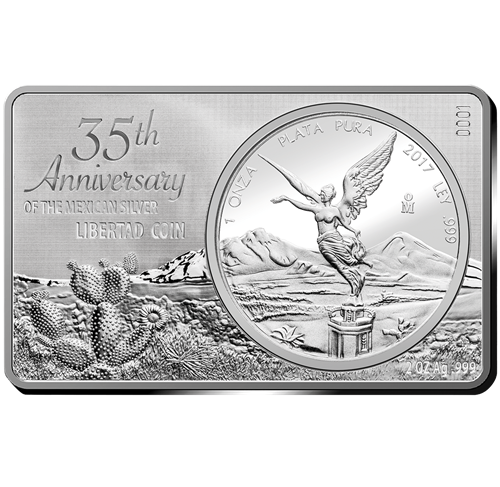 La Libertad mexicaine – l’une des pièces d’investissement les plus connues au monde – célèbre son 35e anniversaire en 2017. Pour l’occasion, un ensemble a été créé : il comprend une pièce Libertad de 1 oz s’insérant dans une plaquette de 2 oz, toutes deux en argent pur à 99,9 %. Les pièces Libertad ont toujours occupé une place particulière sur le marché des métaux précieux : leur popularité ne se dément pas depuis plus de 35 ans.