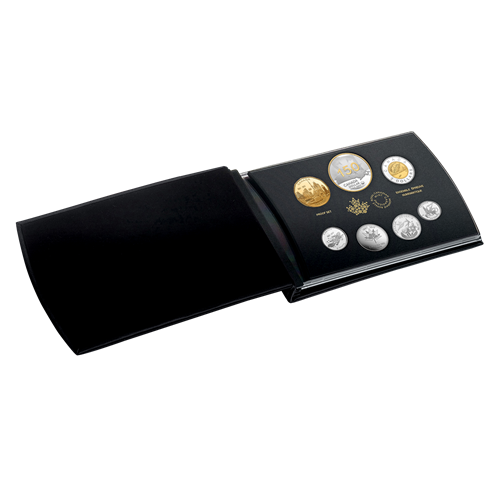L'ensemble comprend également une pièce de 50 cents ornée du logo officiel CANADA 150, soit une mosaïque formant une feuille d'érable, qui représente la Confédération, ainsi qu'un dollar épreuve numismatique édition spéciale conçu par l'artiste Jamie Desrochers. Cette pièce met en lumière le symbole canadien le plus reconnu d'entre tous, le drapeau national, qui prend ici un aspect éthéré grâce à son fini givré; c'est une façon touchanted'évoquer l'immense fierté qui gagne les Canadiens de tout le pays (représentés par la carte) alors qu'ils se rassemblent pour célébrer cetimportant anniversaire national. L'avers est à l'effigie de Sa Majesté la reine Elizabeth II, selon Susanna Blunt.