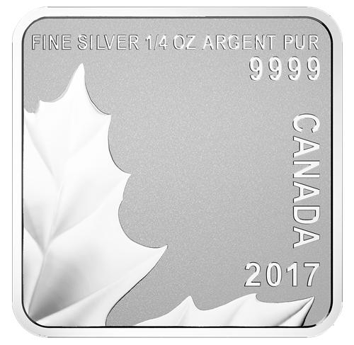 Chacune des quatre pièces de cet ensemble des plus originaux présente au revers une partie du motif créé par l'artiste canadienne Celia Godkin. La gravure finement détaillée recréé toute la beauté d'une feuille d'érable à sucre (Acer saccharum), telle qu'on la contemplerait dans la nature. Des bords légèrement dentelés de la feuille jusqu'aux nervures profondes qui sillonnent chaque lobe, les détails minutieux ajoutent de la profondeur,du relief et de la texture au motif réaliste. Chaque pièce témoigne ainsi du savoir-faire inégalé des graveurs de la Monnaie et, une fois réunis, les quatre revers recréent l'image puissante d'une feuille d'érable, dans une célébration émouvante du Canada et de tout ce qui le définit. L'inscription « FINE SILVER ¼ OZ ARGENT PUR 9999 », la mention « CANADA » et le millésime « 2017 » sont également gravés au revers. L'avers est à l'effigie de Sa Majesté la reine Elizabeth II, selon Susanna Blunt, et présente la valeur nominale « 3 DOLLARS ».