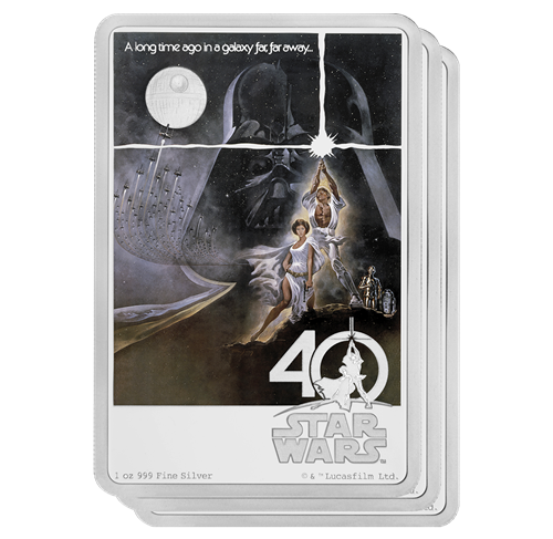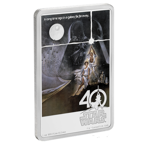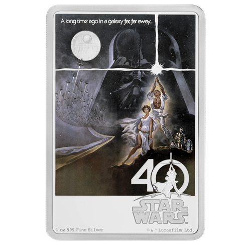 Il y a 40 ans, le 25 mai 1977, La Guerre des étoiles prenait d'assaut les écrans géants, faisant une entrée fracassante dansla culture populaire. Autorisée par Disney, cette pièce commémorativede 1 oz en argent pur présente, en l'honneur du 40e anniversaire de La Guerre des étoiles, une reproduction de l'affiche originale du film. C'est le cadeau idéal pour tout amateur de l'univers Star Wars ou pour un numismate. Le tirage mondial étant limité à 10 000 exemplaires, ne tardez pas : commandez dès aujourd'hui!