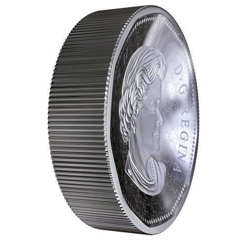 Nous avons exploité toute la créativité de notre équipe novatrice de recherche et développement (R-D) pour mettre au point cet objet de collection aux multiples facettes : une pièce biconcave reprenant la forme hendécagonale et le motif au revers de la piècede un dollar canadien. Chaque côté de la pièce présente une courbure de 6,3 millimètres, et sa tranche fait plus de 16 millimètres d’épaisseur! Unfini brillant épreuve numismatique montre le motif classique sous un nouveau jour, tandis que l’avers, à l’effigie de Sa Majesté la reine Elizabeth II par Susanna Blunt, est magnifiquement gravé sur fond de feuilles d’érable se répétant de manière concentrique.