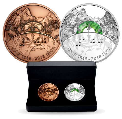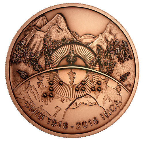Au lendemain de la Première Guerre mondiale et de l’explosion qui, à Halifax, a laissé des centaines de personnesaveugles ou malvoyantes, sept visionnaires ont vu plus loin que la tragédie et n’ont pas renoncé à leur aspiration de faire en sorte que les victimes puissent menerune vie productive, cultiver leurs talents et réaliser leurs rêves. Première création de la Monnaie dessinée par une artiste malvoyante et portant des inscriptions en braille, cette pièce de collection témoigne de la puissance de la vision de l’Institut national canadien pour les aveugles (INCA).