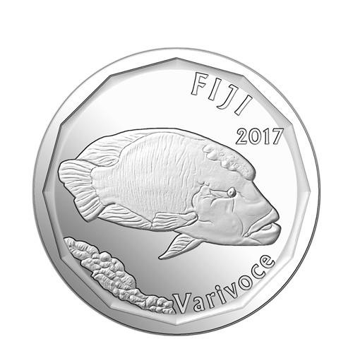 Cette pièce de circulation étrangère, fournie avec l’autorisationde la Reserve Bank of Fidji, a été frappée à l’usine de la Monnaie royale canadienne à Winnipeg au moyen de la technologie de placage multicouche. Elle a un poids métallique nominal de 6,50 grammes et fait 26,50 millimètres de diamètre. Au revers se trouve un napoléon, espèce de poisson vivant près des récifs de corail. Il s’agit d’une espèce protégée aux Fidji, oùon l’appelle varivoce. À l’avers est représentée une pirogue àbalancier traditionnelle appelée camakau.